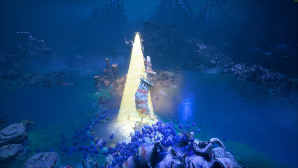 Aqui, controlamos literalmente um farol (sim, um farol de verdade) que inexplicavelmente ganha pernas e começa a caminhar por um mundo pós-apocalíptico, aparentemente abandonado pelos humanos. Esse cenário devastado é habitado por criaturas estranhas, formadas por restos de metal, pedra e lixo, como se a natureza e a tecnologia tivessem se fundido após o colapso da civilização.
