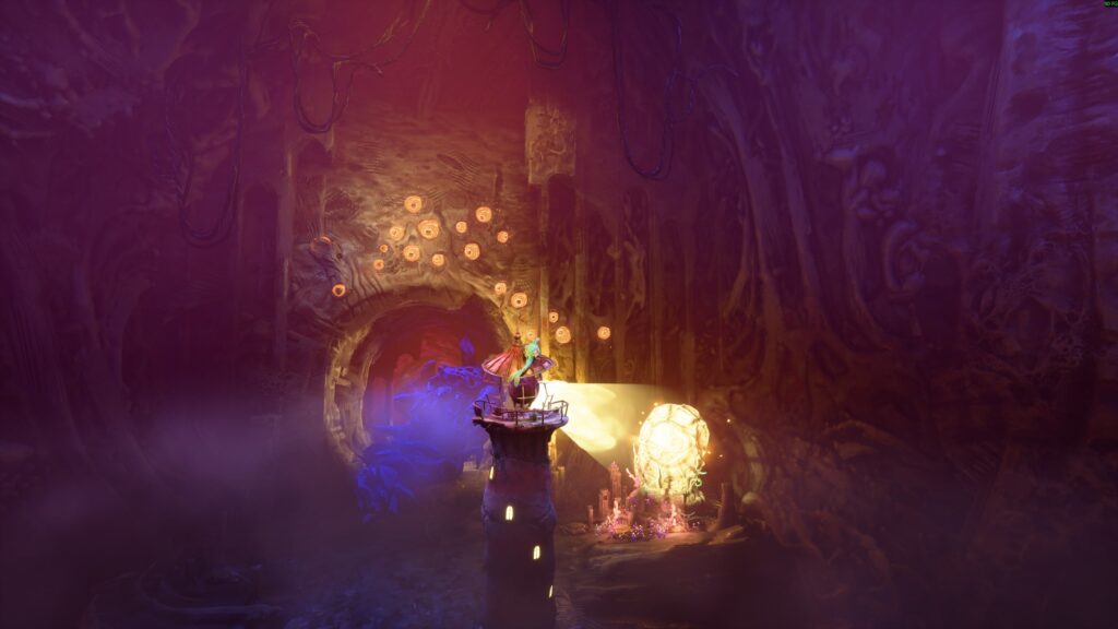 Grande parte da progressão se resume a iluminar caminhos, ativar estruturas e desbloquear portas. É uma mecânica direta, intuitiva, mas que, com o tempo, acaba se tornando repetitiva. Ainda assim, o jogo tenta introduzir pequenas variações ao longo da jornada, principalmente com o auxílio da ave companheira, que adiciona momentos pontuais de interação.