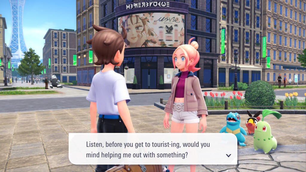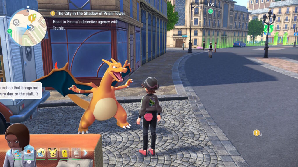 Dessa vez, o jogo retorna à icônica cidade de Lumiose, apresentada originalmente em Pokémon X e Y no Nintendo 3DS. A cidade, inspirada em Paris, volta com força total, repleta de cafés, ruas iluminadas e referências francesas, desde expressões como bonjour e bonsoir até os clássicos croissants. É um cenário charmoso, que serve como pano de fundo para uma história centrada em megaevoluções fora de controle.