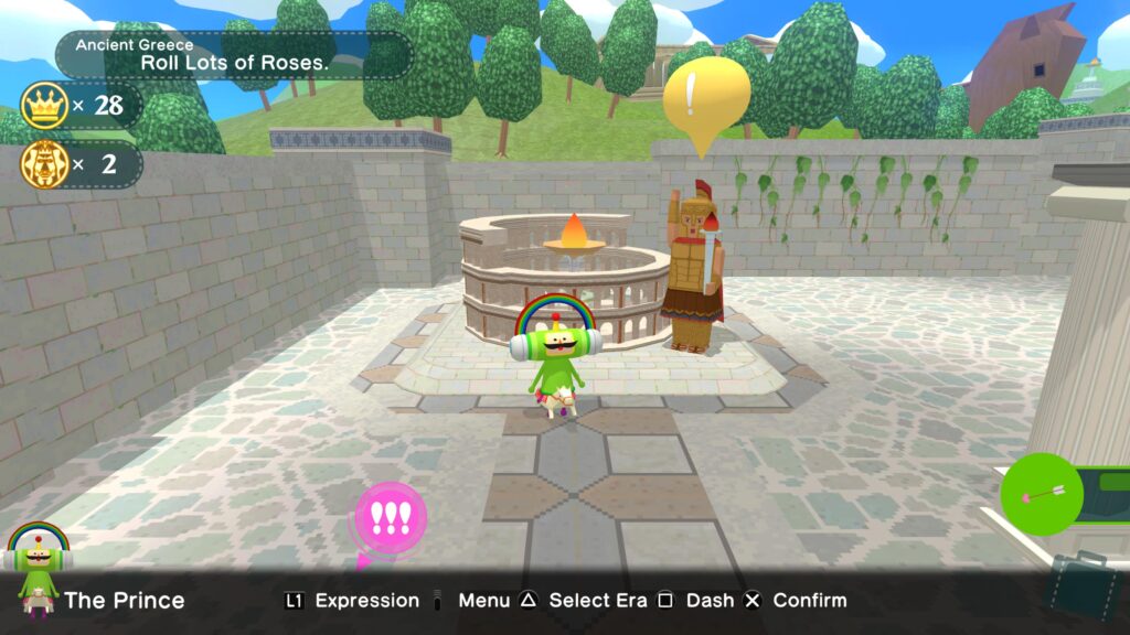 Outro ponto que chama atenção é a nova HUD, redesenhada para ser mais dinâmica e integrada ao ambiente. Cada era que o jogador visita tem referências visuais próprias, o que ajuda a destacar a criatividade do design. Mesmo sem uma evolução gráfica profunda, Once Upon a Katamari consegue transmitir frescor dentro do seu próprio estilo, equilibrando nostalgia e novidade de maneira natural.