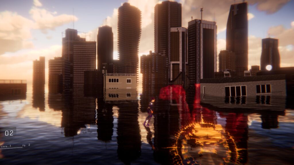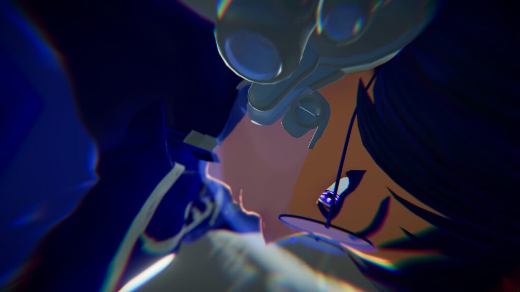 Graficamente, 1000xRESIST não busca o realismo. O jogo adota um visual deliberadamente simples, quase remetendo à era do PlayStation 2, mas com um trabalho de iluminação e uso de cores muito mais moderno e sofisticado. Embora os modelos de personagens sejam básicos, essa estética “low-poly” contribui diretamente para a atmosfera estranha e melancólica do jogo, levantando a dúvida se é uma escolha puramente artística ou uma limitação de orçamento o que, no fim, pouco importa, pois o resultado funciona.