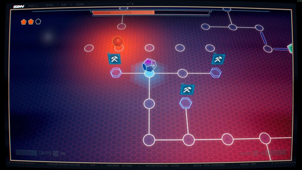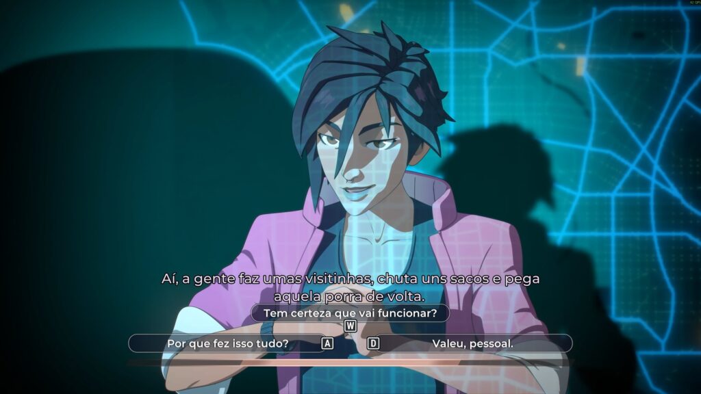 Já os minigames de hacking, que no começo parecem bem básicos, ganham variedade conforme a trama avança. O que era apenas buscar um código se transforma em abrir caminhos, driblar uma espécie de antivírus e até coordenar riscos como se estivesse lidando com “choques elétricos” para liberar rotas. A base é simples, mas a execução evolui num ritmo bom, sempre reforçando a sensação de urgência.