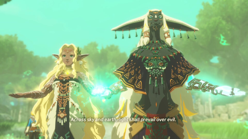 As primeiras horas funcionam como uma espécie de grande tutorial narrativo: começamos em um período ainda relativamente estável, até que Ganondorf finalmente toma o poder e espalha sua influência maligna por Hyrule. É nesse momento que Age of Imprisonment engrena de vez e a campanha assume um tom mais sombrio e direto, mostrando como esse passado se deteriorou e quais sacrifícios foram feitos para que Ganondorf fosse finalmente selado.