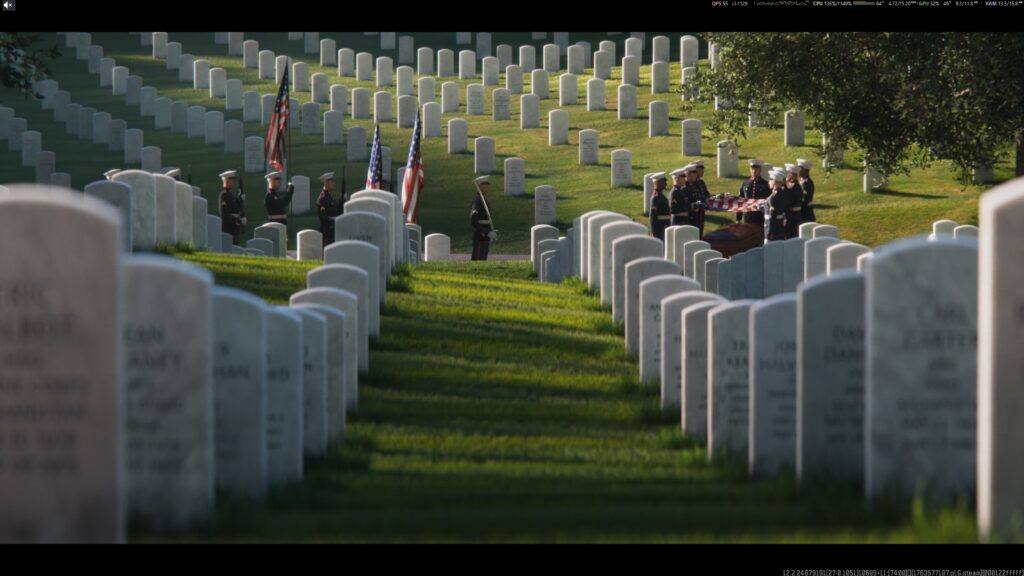 No quesito visual, Black Ops 7 entrega o esperado de um AAA de 2025. As cutscenes continuam sendo o cartão de visitas da Treyarch, com acabamento cinematográfico e direção que realmente impressiona. Todas as cutscenes são um espetáculo visual. Em alguns momentos, modelos de personagens e efeitos de partículas brilham de forma inexplicável.