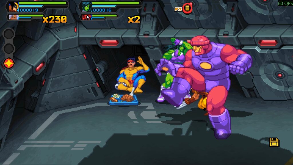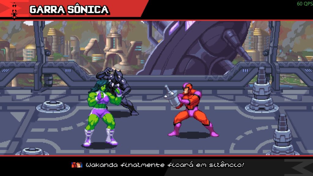 Na parte sonora, Marvel Cosmic Invasion também acerta. A trilha é bem energética, sempre acompanhando o ritmo da ação sendo mais forte em momentos de combate intenso e mais cadenciada quando o jogo prepara alguma transição. Os efeitos sonoros também seguem a cartilha dos beat’em ups clássicos: socos secos, inimigos sendo arremessados de um lado para o outro, impacto de tiros, quedas, colisões… Tudo bem mixado e coerente com o estilo do jogo.