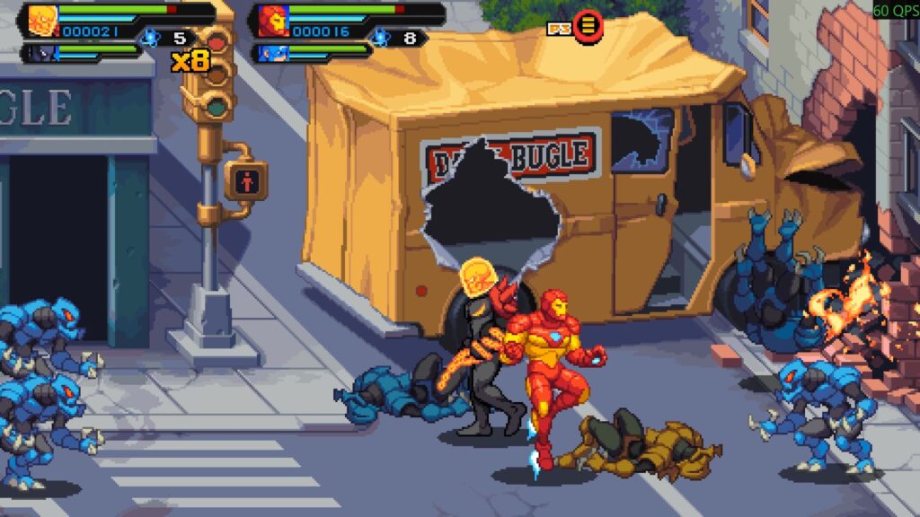 Marvel Cosmic Invasion segue exatamente a linha estética que a Tribute Games e a Dotemu vêm consolidando nos últimos anos: um resgate consciente do visual 16-bits, com animações 2D cheias de personalidade e aquela pegada de arcade dos anos 90. Marvel Cosmic Invasion não tenta modernizar demais, e isso acaba sendo um dos seus maiores méritos.