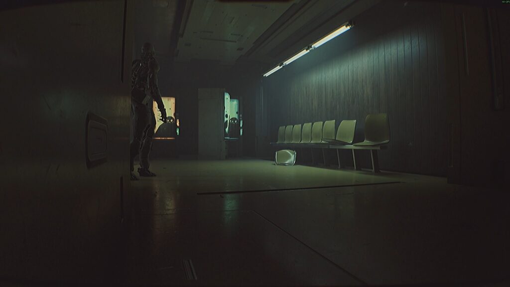 Visualmente, Routine trabalha muito bem com luz e sombra. A iluminação é forte, mas sempre limitada, criando trechos mal iluminados, corredores com lâmpadas vermelhas e áreas que parecem acender e apagar no ritmo da sua própria ansiedade. É aquele tipo de cenário em que cada esquina parece perigosa, mesmo que nada aconteça. Essa sensação lembra um pouco o estilo de Alien Isolation. Não por imitar diretamente, mas por transmitir a mesma ideia de fragilidade: você não está ali para enfrentar o perigo, mas para sobreviver a ele.