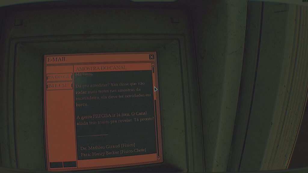 Essa estrutura reforça o caráter mais “gato e rato” da experiência. Routine não tenta ser um jogo de combate, e não faz concessões para quem busca algo mais direto. Ele exige leitura, observação e paciência: quase tudo depende de interpretar relatórios, notas, e-mails e informações espalhadas pelos cenários. Além disso, por ser um mundo propositalmente analógico, muitas ações precisam ser realizadas manualmente, desde alternar módulos da CAT até acessar terminais que transformam o próprio cursor da tela no seu “mouse”. É um jogo que aposta mais na investigação do que em reações rápidas.