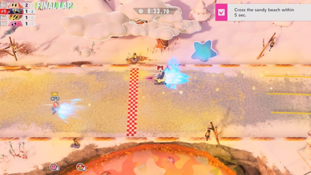 Para ver o final verdadeiro de Kirby Air Riders e enfrentar o colossal chefe secreto, é necessário jogar o modo em New Game+, explorando caminhos alternativos que não estavam disponíveis na primeira jogada. Isso garante um fator replay alto (quase como um rogue). Ainda assim, é uma adição valiosa que diferencia o título de ser apenas um party game ou de corrida arcade.