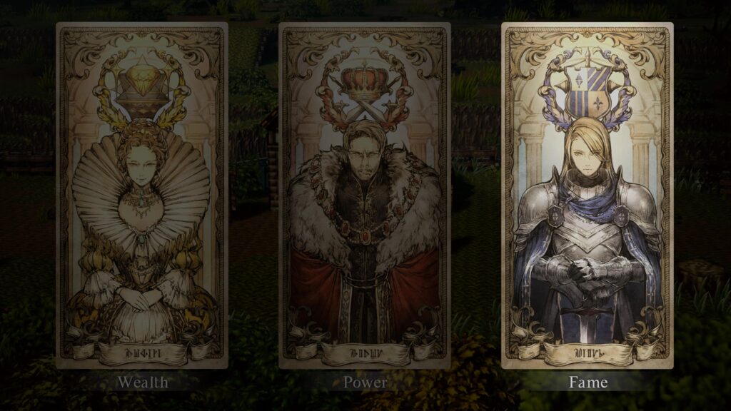 Um ponto forte é a influência das escolhas iniciais. Diferente de um protagonista genérico, suas decisões sobre qual rota de poder seguir (Riqueza, Poder ou Fama) alteram o início da jornada, determinando quais personagens se unem à party mais cedo ou quais equipamentos você obtém. Isso garante que Octopath Traveler 0 proporcione experiências iniciais únicas para cada jogador.