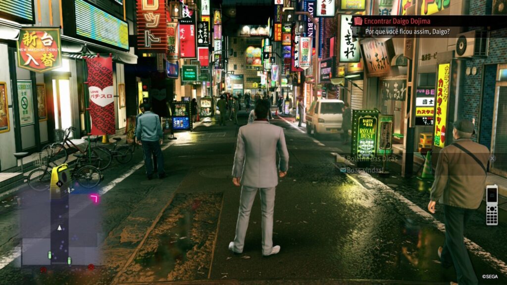 A grande novidade desta versão para PS5 é a localização oficial em português do Brasil, que finalmente torna a densa trama política da Yakuza acessível ao grande público local.