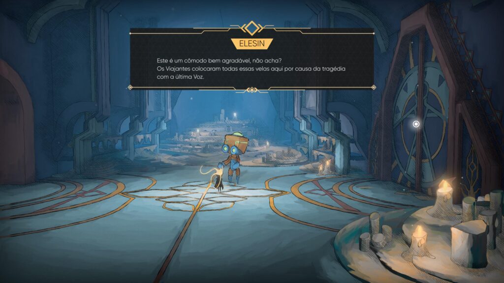 É nesse cenário que surge Mio, um pequeno guardião que dá nome ao jogo. Seu papel não é apenas avançar ou combater inimigos, mas tentar entender o que aconteceu com a Nau, ajudar seus moradores sempre que possível e, principalmente, ouvir suas histórias. A narrativa não é entregue de forma direta, sendo construída aos poucos, conforme você explora cada área e interage com o ambiente.