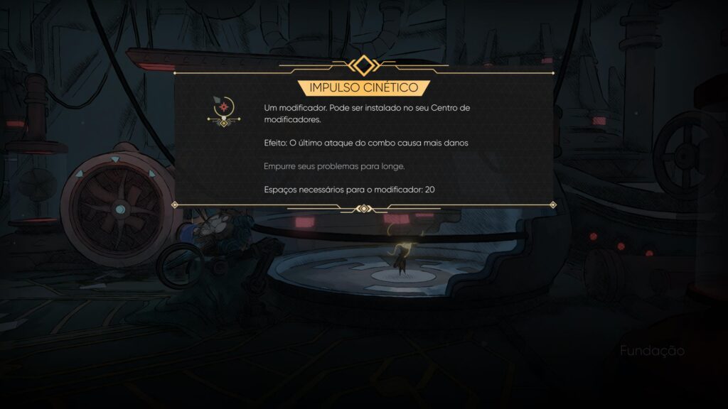 O segundo destaque está no sistema de equipamentos e habilidades. Ao longo da jornada, Mio desbloqueia núcleos que podem ser equipados para modificar seu estilo de jogo. Esses núcleos oferecem vantagens variadas: combos extras, aumento de dano conforme a vida diminui, mais resistência ou melhorias diretas na barra de energia, entre outros efeitos. Cada habilidade equipada consome um determinado número de espaços, o que obriga o jogador a fazer escolhas estratégicas.