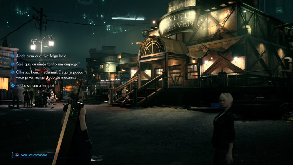 Ainda assim, o trabalho feito aqui é impressionante. Final Fantasy VII Remake Intergrade não apenas recria Midgar, mas dá escala e vida à cidade de uma forma que simplesmente não era possível em 1997. Ruas mais amplas, setores bem definidos, NPCs comentando os acontecimentos, jornais espalhados pelo cenário, minigames e atividades paralelas ajudam a construir um mundo muito mais crível e ativo.