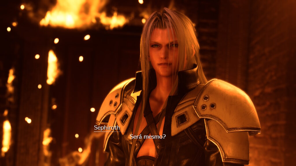 Outro ponto que chama atenção são alguns efeitos visuais específicos. Cenas com fogo e explosões, por exemplo, apresentam uma iluminação menos refinada e, em certos momentos, até estranha. Não chega a comprometer a experiência, mas deixa claro que houve cortes e simplificações para manter Final Fantasy VII Remake Intergrade rodando de forma consistente.