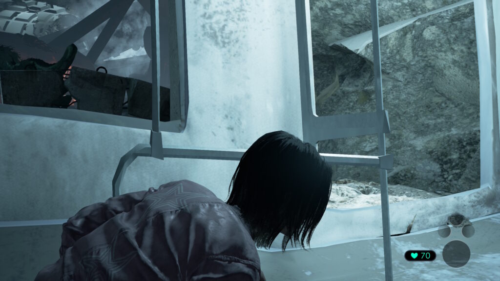 Por outro lado, o a parte sonora carrega a atmosfera nas costas. A trilha sonora cria a tensão necessária, e o design de som ambiente é crucial para localizar as ameaças. Um toque brilhante é o uso da vibração do controle para simular os batimentos cardíacos da protagonista, aumentando a imersão física. Vale destacar que a dublagem japonesa é superior à inglesa, entregando atuações mais convincentes.