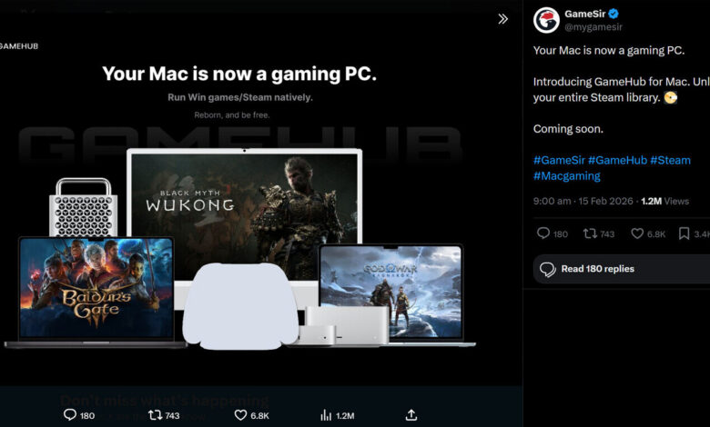 A GameSir anunciou o lançamento iminente do GameHub para macOS. A plataforma promete transformar Macs em PCs de jogos, permitindo que os usuários acessem toda a sua biblioteca Steam diretamente em dispositivos Apple. Atualmente, a versão Android do GameHub oferece a possibilidade de jogar qualquer jogo em qualquer lugar por meio de emulação.