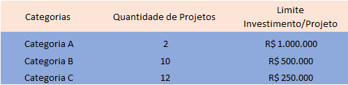 A verba será distribuída para até 24 projetos com a seguinte divisão de recursos: