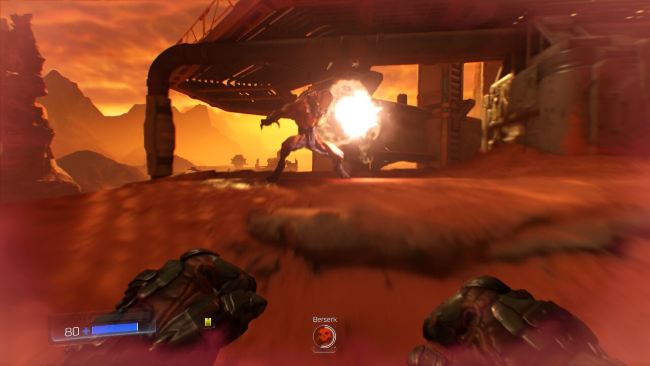 E agora vamos ao ponto negativo desta versão, os seus gráficos. Quem jogou a versão lançada no ano passado sabe como o jogo tem muitas texturas, uma iluminação sublime e muita coisa acontecendo na tela. Esta versão certamente é a mais feia de todas. Além de rodar somente em 720p (admito que fica um pouco esticado demais na TV), muitas texturas e efeitos de luz e iluminação foram removidos. O mais gritante é a “mira” da sua arma, juntamente com o azul/laranja do GLORY Kill. É visível como os eles sofreram downgrade a ponto de estarem pixelados na tela. Outra coisa que pude perceber é que muitas cenas e personagens ficam embaçados, isso acontece para diminuir a necessidade de processamento do console. Ao chegar mais perto, a imagem é renderizada totalmente.
