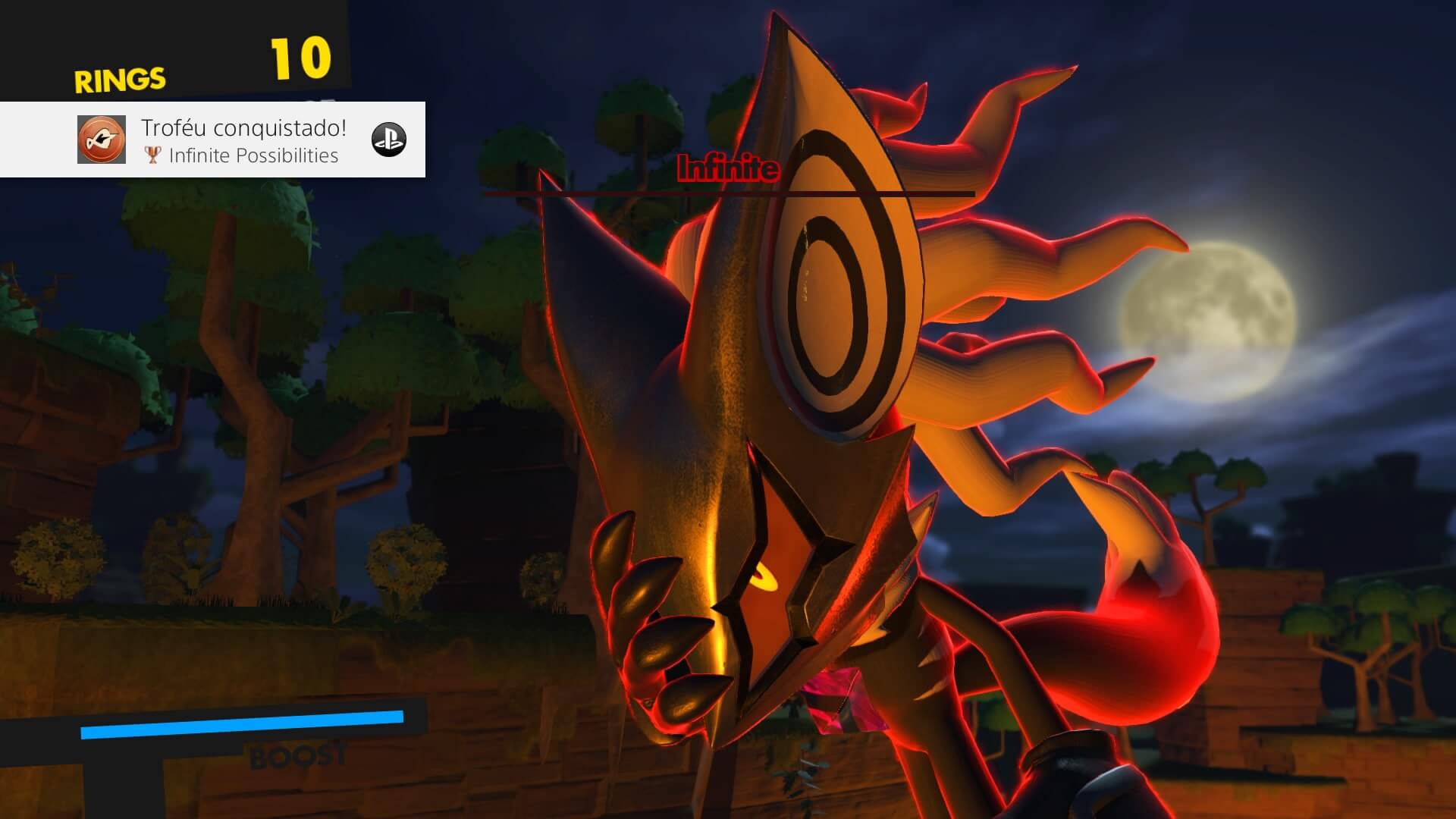Temos dois novos personagens em Sonic Forces. Infinite e seu Avatar. Por um lado Infinite também acaba sendo um vilão clichê e com uma motivação um tanto rasa. Ele é extremamente poderoso, afinal seu nome é infinito de poder infinito. Ele é tão poderoso que ele chega a ser muito arrogante em diversos momentos e sempre deixa os heróis viverem para tentar derrota-lo um outro dia. Afinal ele sente falta de um verdadeiro desafio.