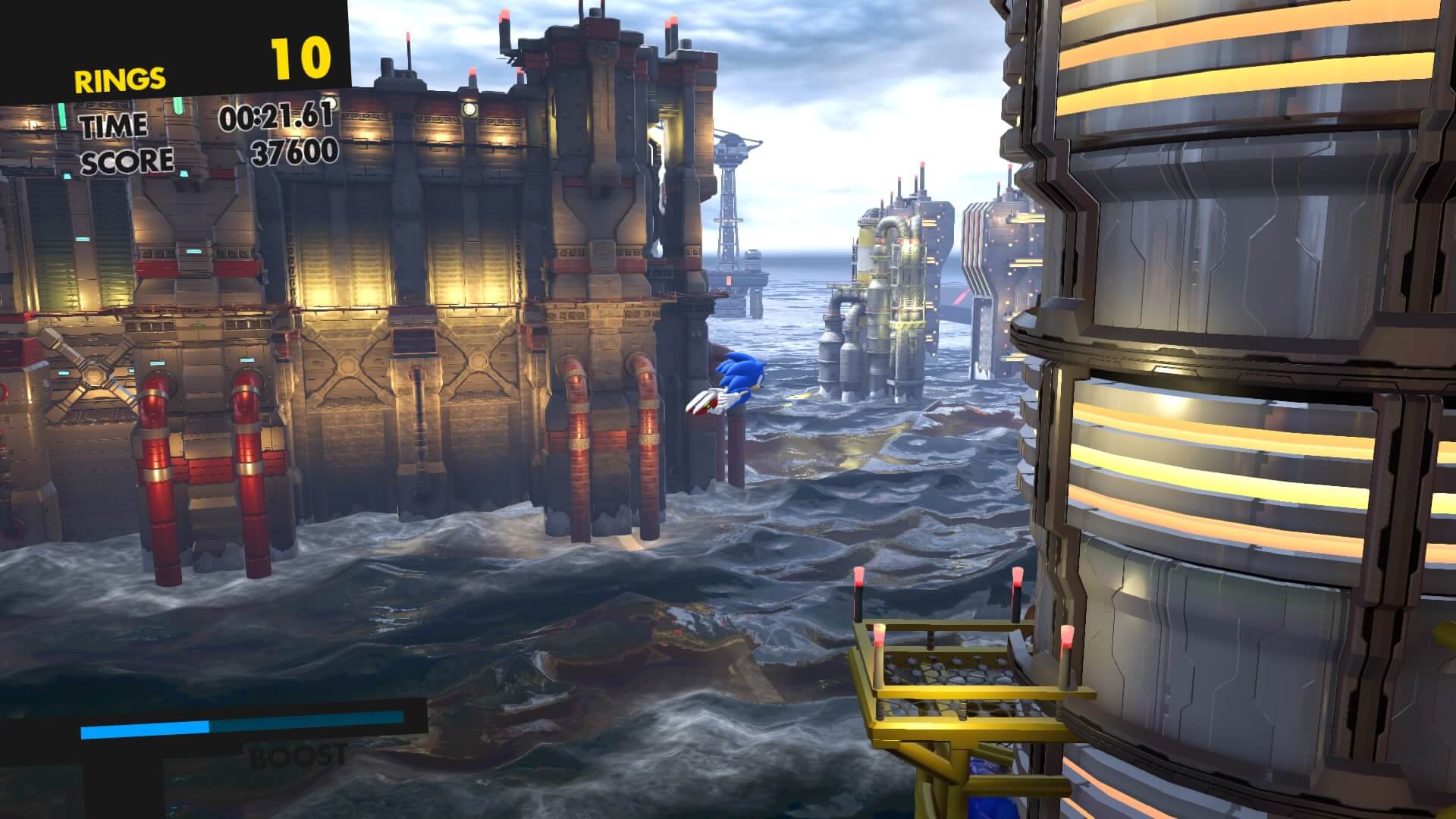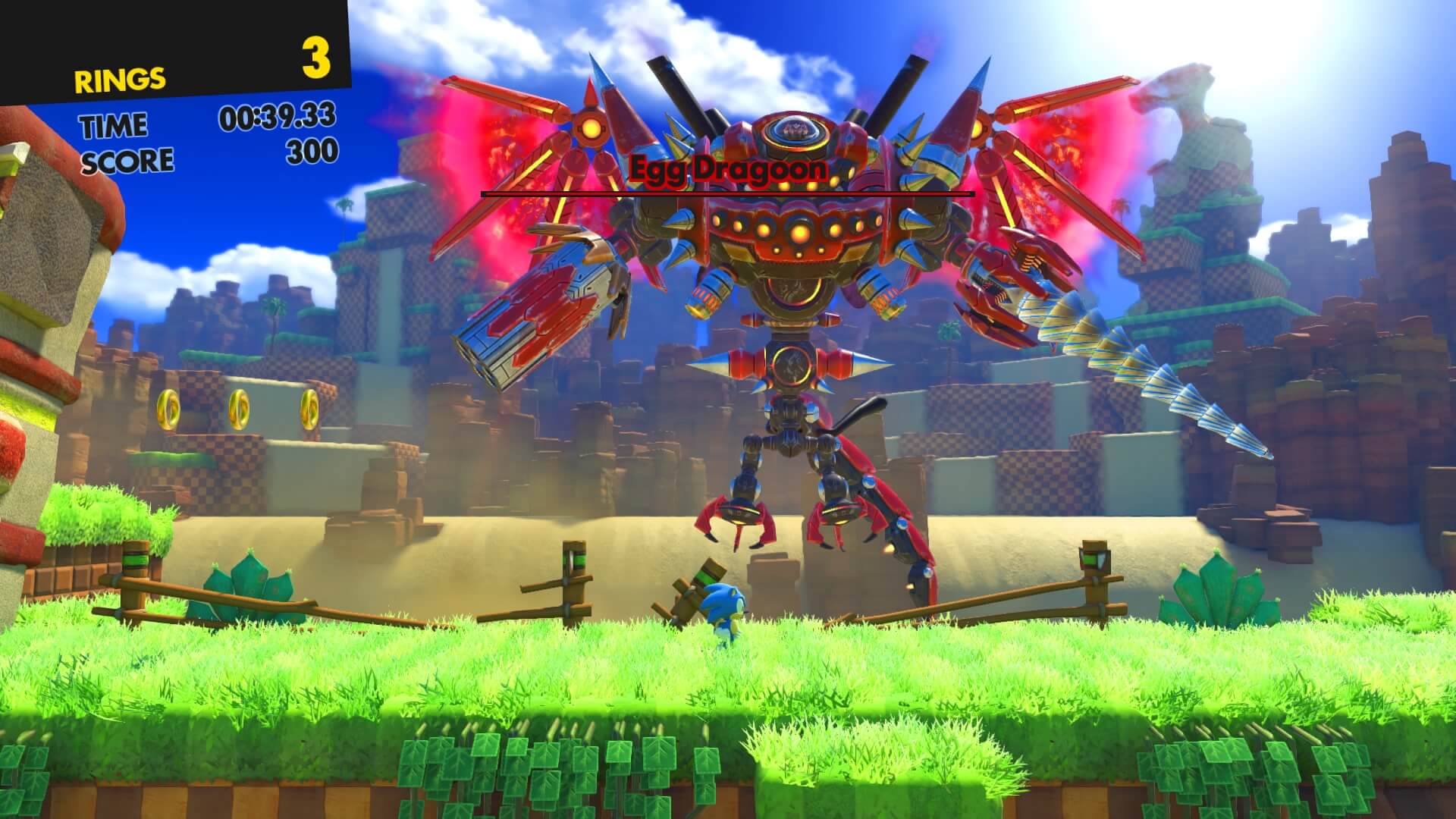 - Sonic Clássico – Sinceramente eu tenho sentimentos divididos com essas fases. No geral o Sonic Clássico funciona bem, mas tenho 2 críticas. A primeira é que a câmera fica perto demais da fase e isso não ajuda na tomada de decisão. Já a segunda é que não existe desaceleração do Sonic. Se você pular em um ponto ele grudará no chão que nem cola. É estranho controlar o Sonic Clássico.