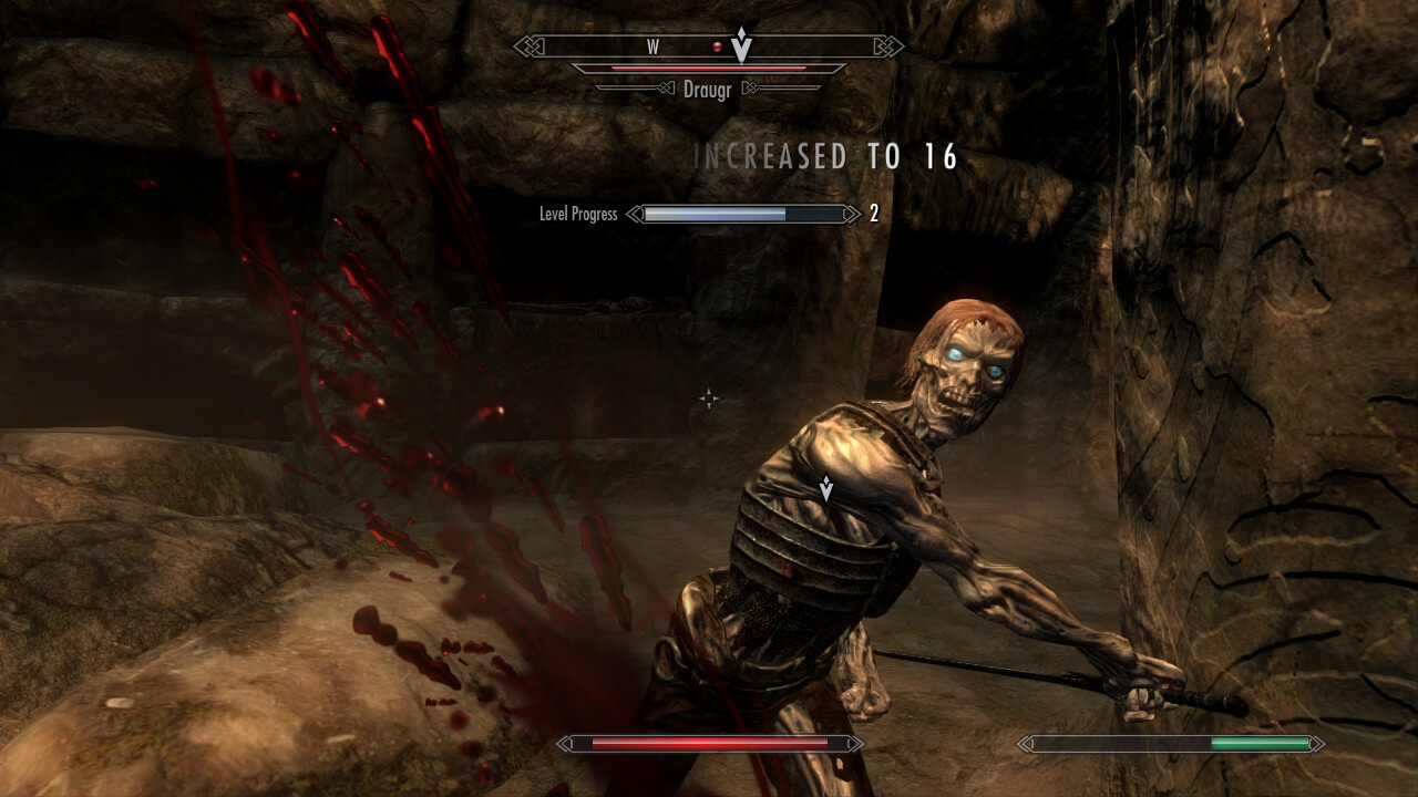 Após derrotar seu primeiro dragão, você será chamado para ir a um lugar sagrado habitado por anciões para entender melhor seus novos poderes. Claro que você pode seguir a história e fazer isso, mas também é possível explorar cada esquina e falar com todas as pessoas no mundo de Skyrim. O jogo é uma simulação incrível do RPG de mesa. Resumindo, podemos dizer que é possível comprar uma casa, casar, adotar uma criança, matar bandidos, matar inocentes, roubar, ser procurado, escolher lado em religiões e ideologias e muito, mas MUITO MAIS. Um exemplo que acontece logo no início do jogo é que se você for mordido por muitos “ratões”, você pegará raiva (ou algo parecido). Após isso, ao falar com as pessoas muitas perguntam se você está doente. Claro, é possível também virar lobisomem, vampiro, etc.