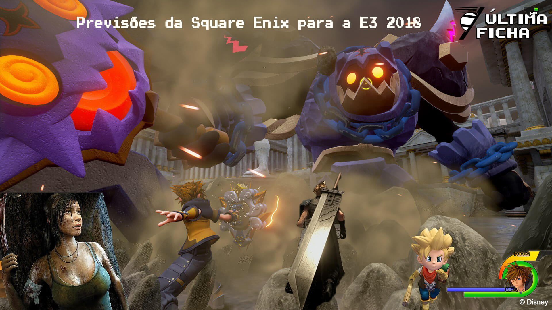 Neste episódio nós falamos sobre a Square Enix e seus muitos e antecipados jogos que irá apresentar. Sem dúvidas alguma veremos o tão antecipado Kingdom Hearts 3 e possivelmente veremos uma data de lançamento para ele. Também é certo de vemos o mais novo jogo da Lara Croft, The Shadow of the Tomb Raider. E claro, muitos outros jogos são esperados como Dragon Quest Builders 2, Dragon Quest 11 e o sempre aguardado remake de Final Fantasy 7.