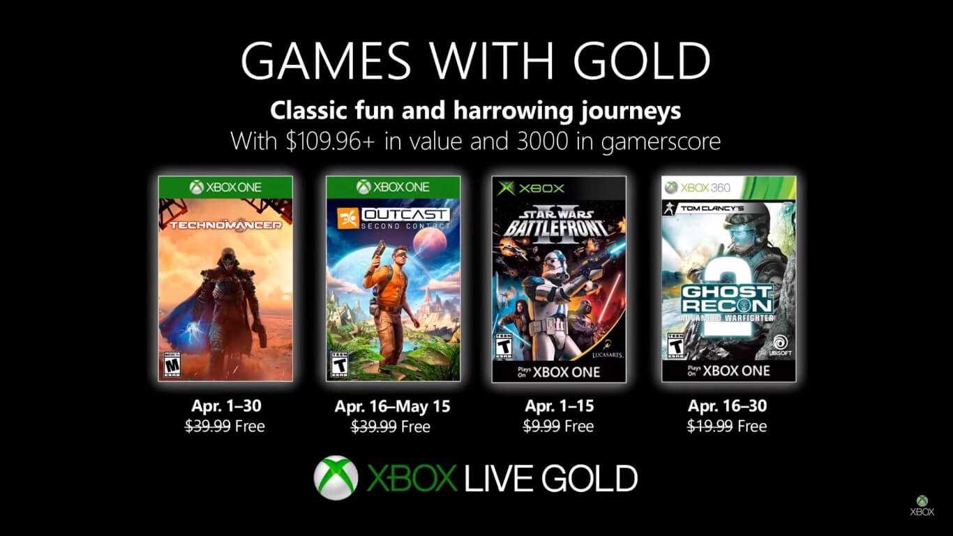 Para o Xbox One, os assinantes Live Gold poderão fazer o download de The Technomancer (U$39.99) gratuitamente durante todo o mês de Abril. Já Outcast – Second Contact (U$39.99) ficará disponível para download a partir do dia 16 de Abril até o dia 15 de Maio.