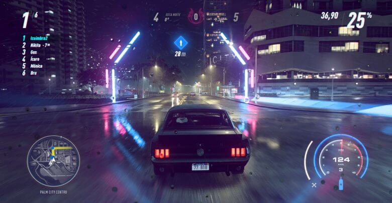 Como mencionei acima, o mapa de Need for Speed Heat é muito grande e cheio de coisas para fazer. A cidade de Palm City é dividida em 18 bairros e cada um tem sua temática. Você encontrará diversos tipos de ambientes como uma cidade grande, floresta, praia, parques, manguezal e até uma estação de foguete da NASA!