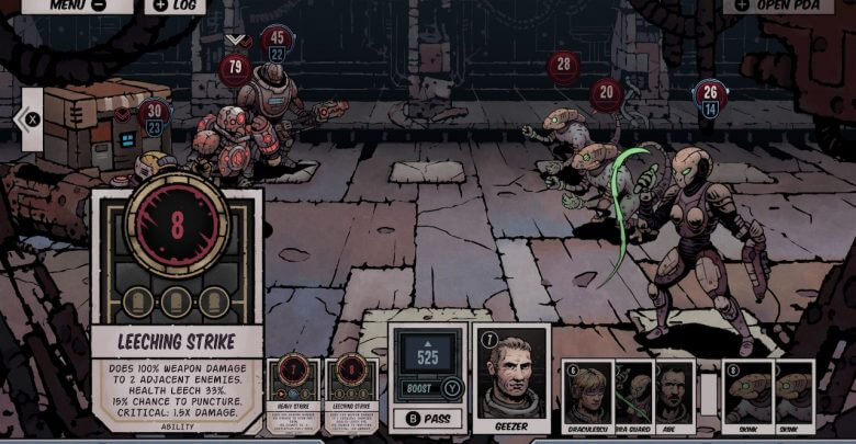 Ao jogar Deep Sky Derelicts: Definitive Edition eu de cara gostei muito de seus gráficos, pois parecia que estava lendo uma HQ (quadrinho). Ele é super estiloso e cheio de detalhes. Claro, não espere uma animação com os personagens. Como é um estilo de quadrinho, as cenas são estáticas. A única animação que me saltou aos olhos, foi a de dano que flutua na tela.