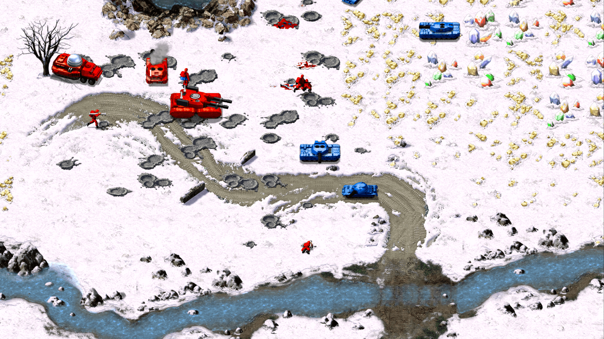 E por falar nessas diferenças, eu não me lembrava de como o jogo era difícil e técnico. Em Command & Conquer Remastered Collection você irá se frustrar e ter sucesso em diversas missões até entender o melhor tipo de estratégia e qual unidade é melhor contra qual. Mas uma coisa é certa, qualquer unidade móvel (carro, tanque, etc) pode atropelar as pessoas e isso faz um estrago absurdo.