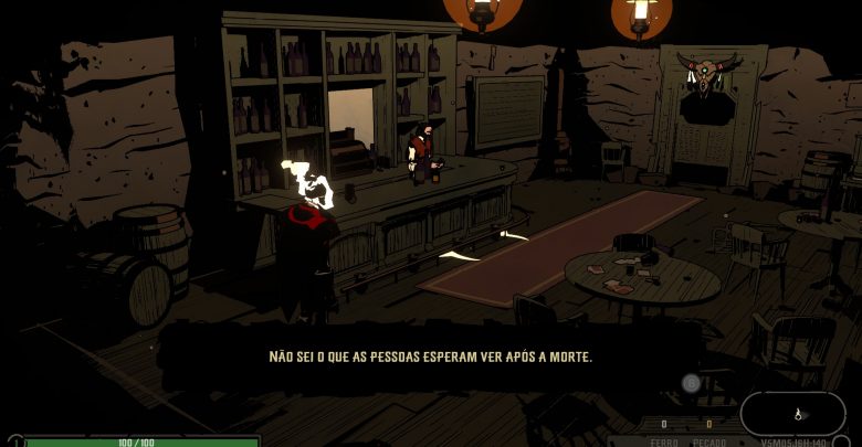 West of Dead apresenta uma vida pós morte onde se passa em um cenário de faroeste. Inclusive a narração segue essa temática encaixando muito bem na ambientação.