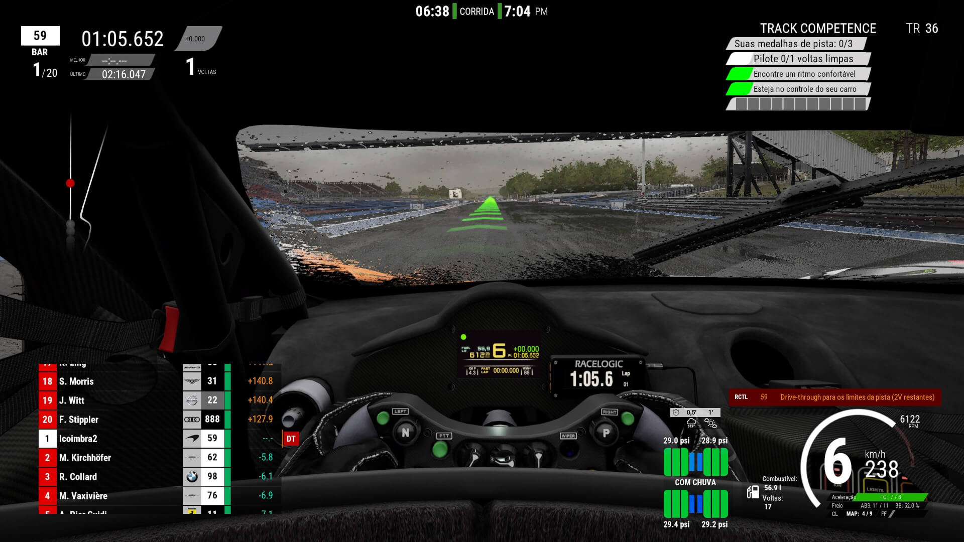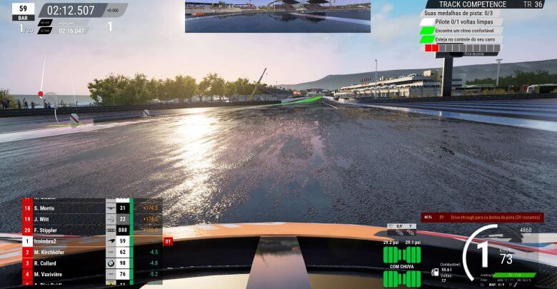 E abraçando a simulação do jogo, você não somente terá inúmeros ajustes a fazer como terá que ficar de olho em diversos fatores como pressão e temperatura do pneu que irá influenciar diretamente no grip de seu carro.