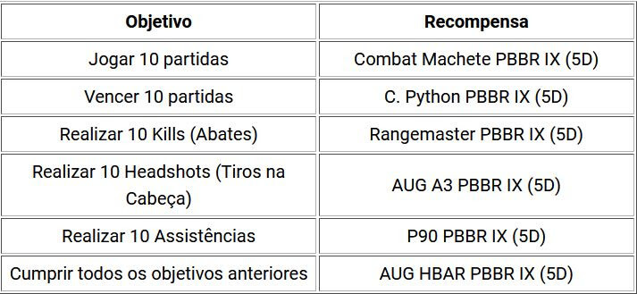 Para àqueles que sonham em portar a sniper mais poderosa de todo o jogo, chegou o momento: Disponíveis até o dia 8 de setembro, as Cartas de Missão PB#10#ANOS garantem uma série de recompensas incríveis, e por fim a Barret M8A1 como recompensa máxima quando todas as cartas forem cumpridas.