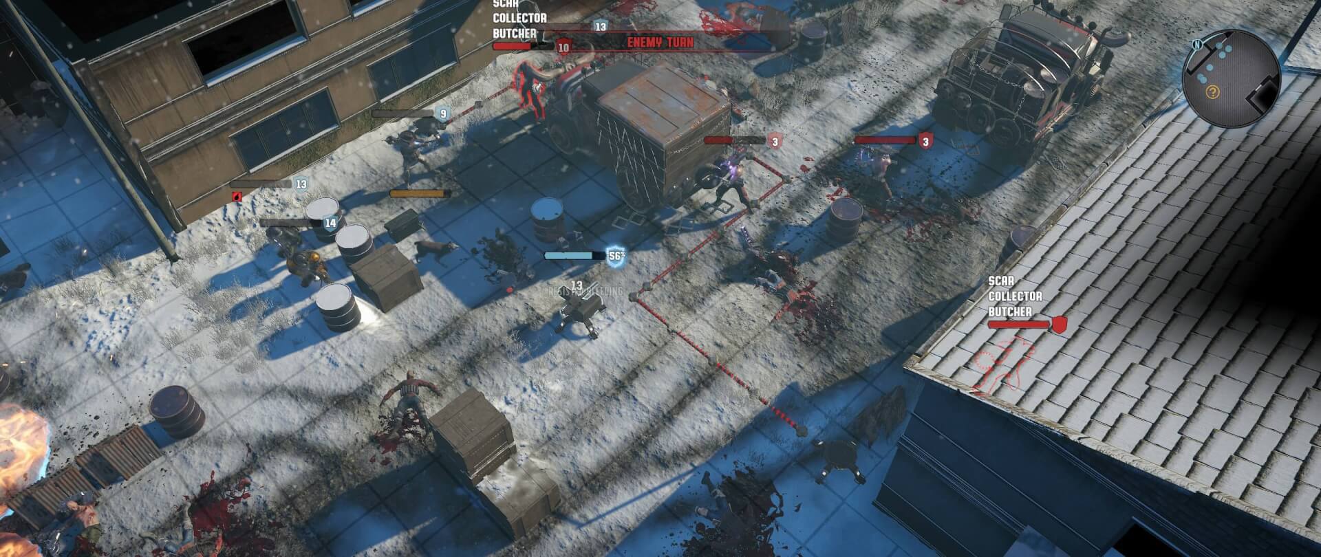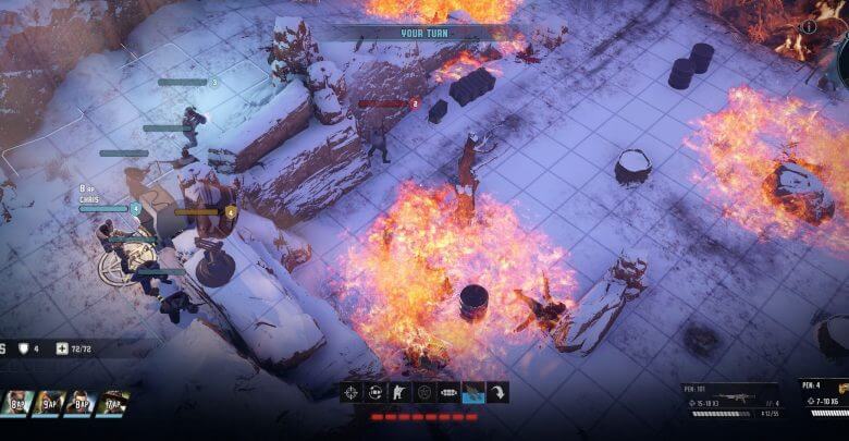 Após montar seu time, no meio da luta cada um terá um número de AP (pontos de ação) por turno. Toda ação como atirar, recuperar vida, utilizar itens e até se mover irá utilizar esses pontos. Caberá a você ler o cenário e seus inimigos para saber como e quando agir.