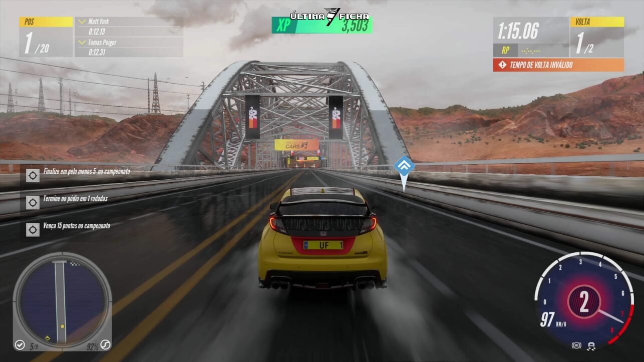 Estes desafios são legais, trazem uma cobrança bônus para você se preocupar além de somente vencer o desafio. Por exemplo, as vezes você precisa seguir na cola de outro carro por alguns segundos. Mesmo com torque para ultrapassar o inimigo, você se pega controlando a velocidade por mais algum tempo para conseguir completar o desafio.