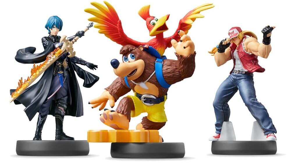 O diretor do jogo ainda anunciou que os últimos três personagens do primeiro pacote de lutadores serão lançados como Amiibo. Então prepare seu bolso para os bonecos de Banjo & Kazooie, Byleth e Terry Bogard. Confira foto dos mesmos abaixo: