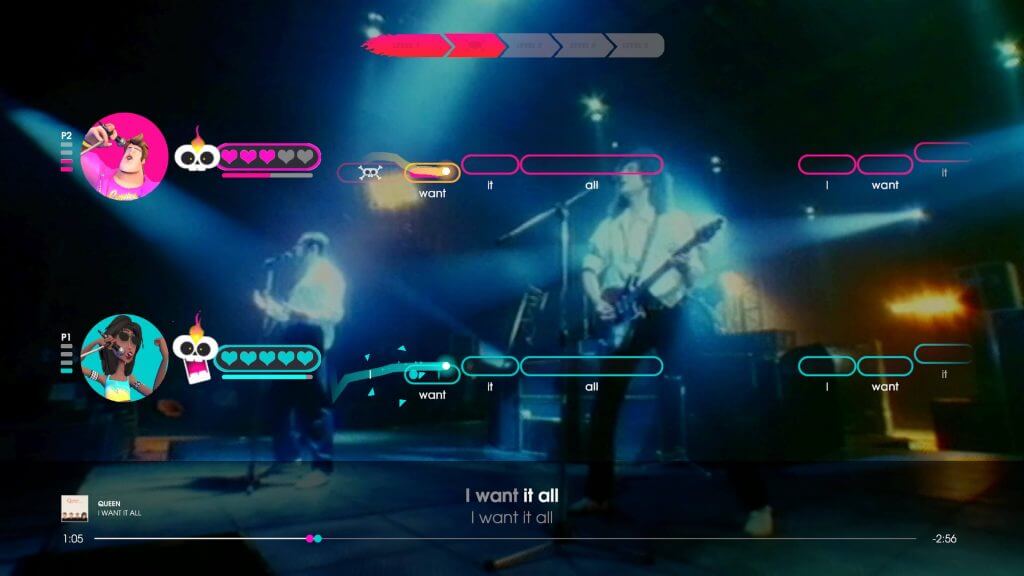 Contando com um repertório de 30 canções, o game consegue trazer diversas faixas bastante conhecidas da banda, e com certeza terá ao menos uma música que todos conhecem. Os estilos de canção também são bastante variados, agregando uma seleção eclética dos diversos álbuns lançados pela banda. Você pode conferir a lista completa aqui, porém ressalto que senti falta de duas canções em particular: Flash Gordon e Love Of My Life. No entanto, consegui me divertir bastante com cada uma das músicas do game.