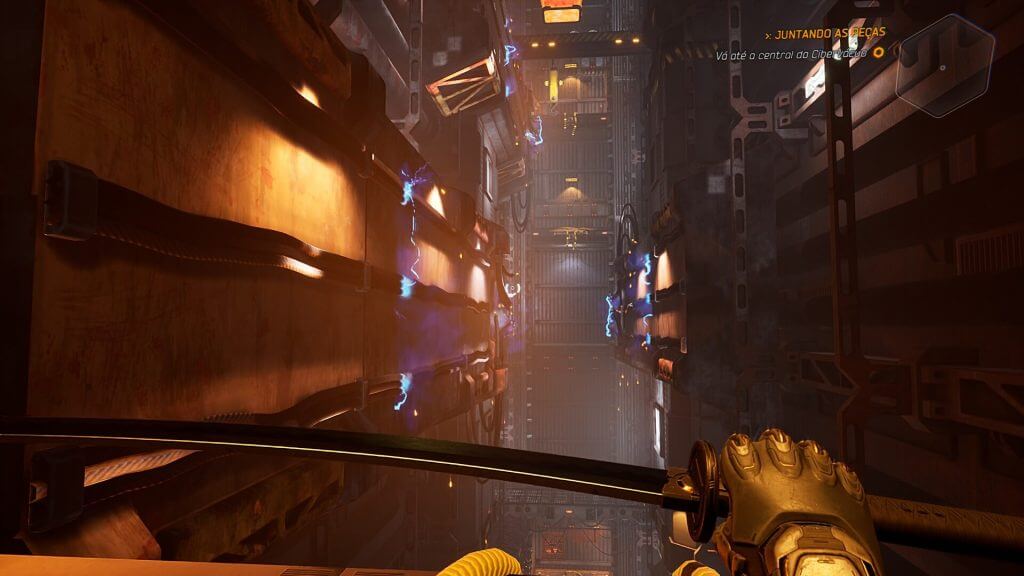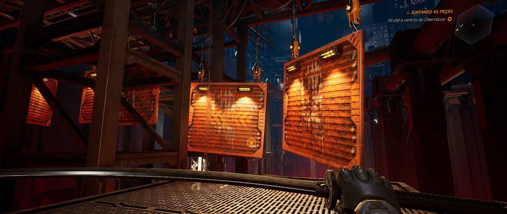 Aqui temos uma cidade de metal iluminada no melhor estilo Cyberpunk com diversos contrastes entre as luzes dessa cidade metalizada e os muitos trechos escuros. A ambientação é impecável e esse é um dos jogos mais bonitos que já vi.