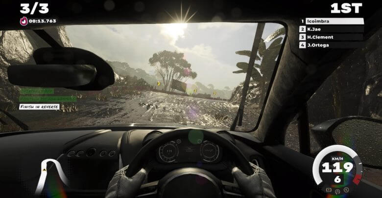 Além da dificuldade natural da pista, se adiciona à fórmula a mudança climáticas. E isso transforma o visual do jogo com o reflexo na água ou então os raios dando um show a parte no fundo da tela.