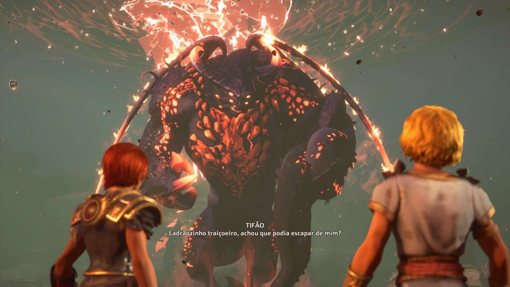 Em Immortals Fenyx Rising temos a ascensão do temível Tifão, que foi aprisionado no passado por Zeus e os deuses do Olimpo. Saindo de sua prisão, ele consegue subjugar todos os deuses e deixar Zeus completamente enfraquecido.