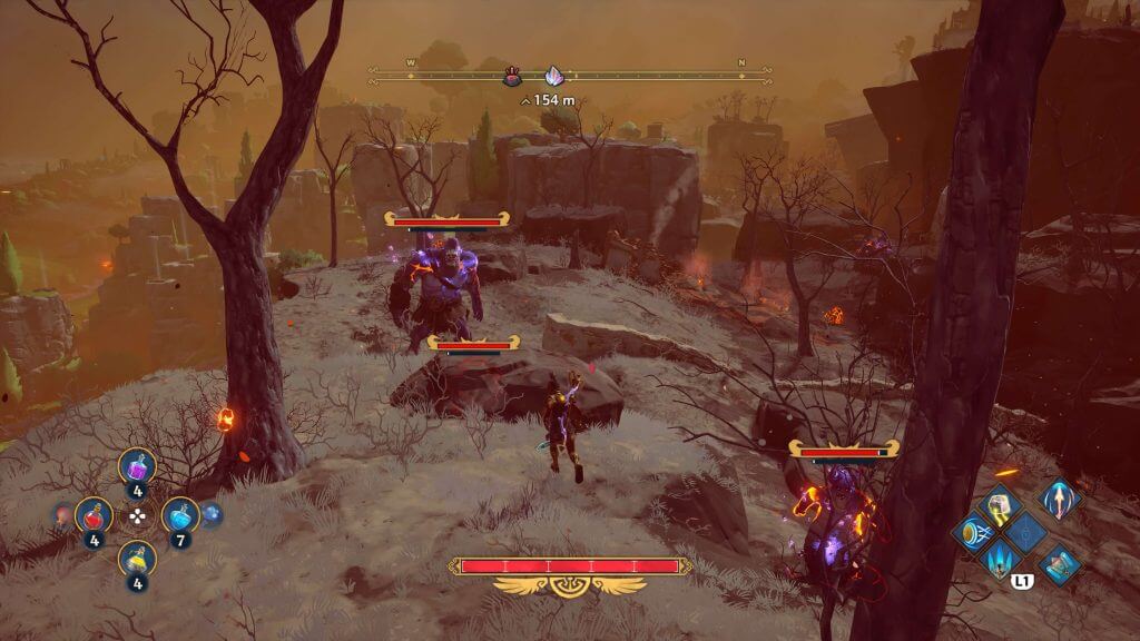 Saindo do foco da forte exploração, Immortals Fenyx Rising carrega um completo combate ao longo do jogo inspirado em Assassin’s Creed.