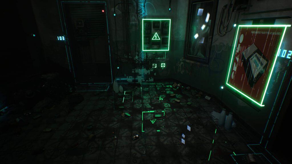 Como já mencionei, em Observer você será um investigador em que poderá entrar no subconsciente das pessoas. Para tal você contará com três tipos de visões. Uma noturna, uma que realça os detalhes orgânicos como sangue e forma do assassinato e outra visão que foca nos eletrônicos.