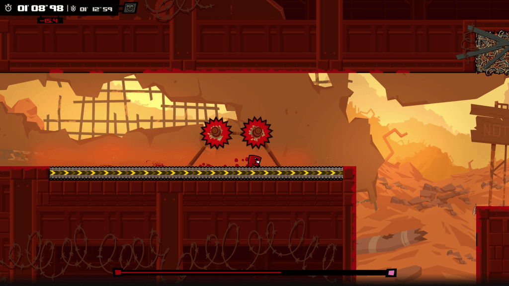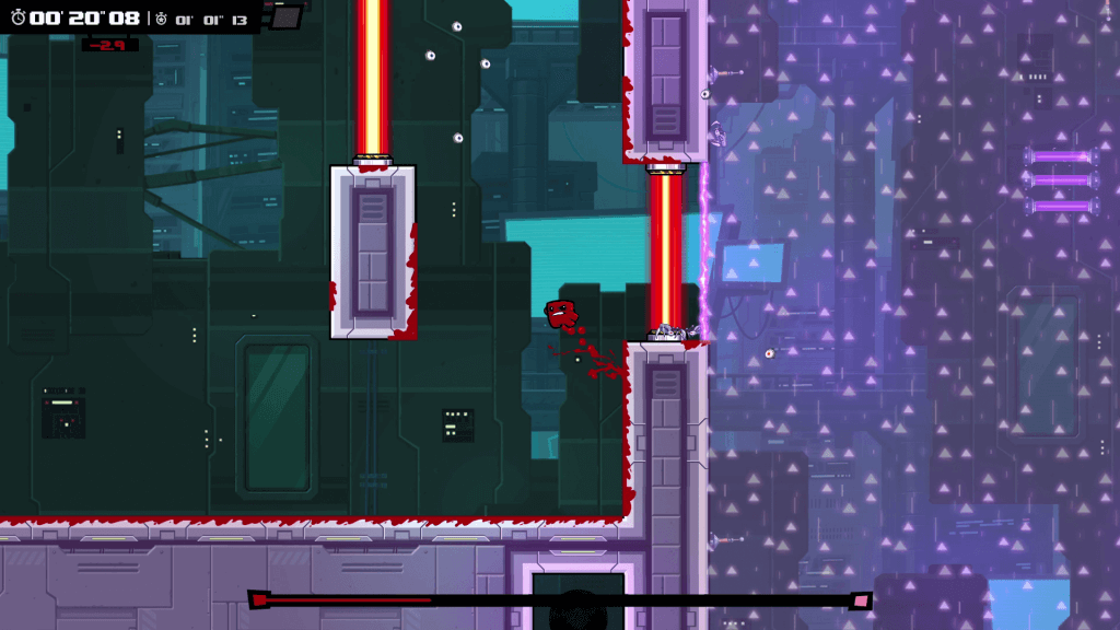 Vale frisar que um dos principais problemas que essa geração procedural de mapas criou junto com a mecânica auto-runner é que não é possível passar de certos desafios sem morrer. Em muitos momentos, é necessário morrer para saber o caminho e os inimigos à frente. Isso é algo que jamais aconteceu no jogo original, visto que era possível estudar o caminho em frente para saber o melhor trajeto. Como a câmera acompanha cada bloco no qual estamos inseridos, é impossível saber o que vem à frente, e isso é um dos principais problemas de Super Meat Boy Forever.