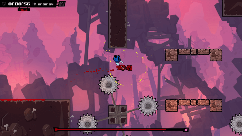 Agora, é louvável a tentativa da Team Meat de inovar com um jogo que foi transformativo na época do seu lançamento. O gameplay de Super Meat Boy em 2010 era único, mas fazer o mesmo sem trazer novidades 10 anos depois seria decepcionante. Pensando nisso, a equipe, além de focar nesse novo gameplay auto-runner, tirou da cartola diversos poderes que dão certo dinamismo ao jogo.