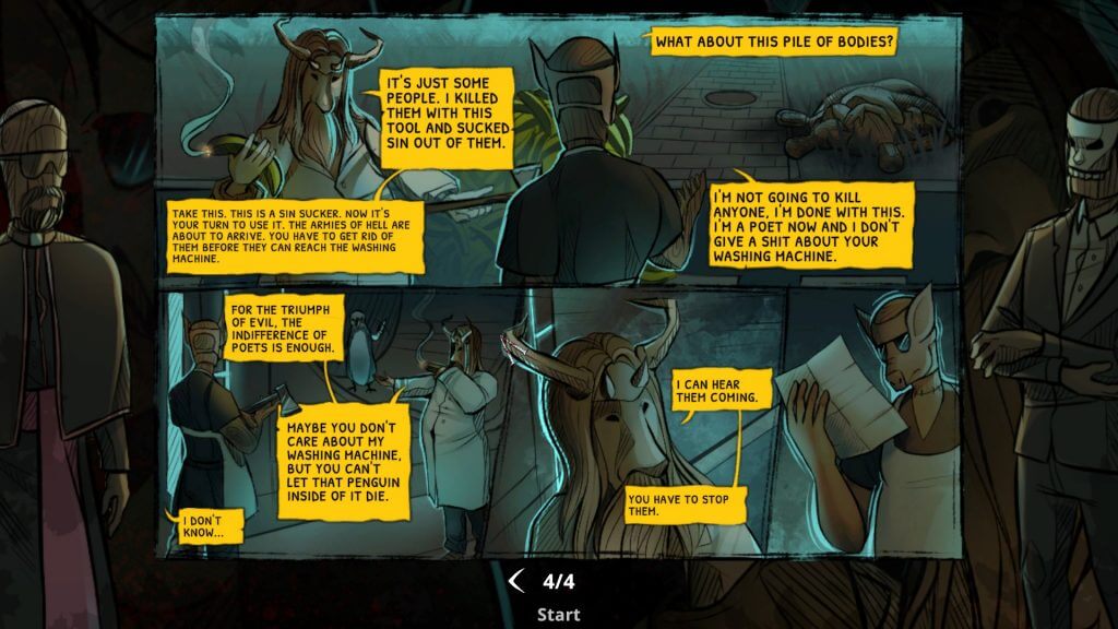 Com essa premissa aleatória, Marvim é convencido por um personagem chamado macaco – mas que não é um, de fato – a largar a aposentadoria para virar, novamente, um assassino (como você é visto por ter sido um açougueiro). Seu objetivo será defender uma máquina de lavar das intermináveis hordas de monstros. Logo a frente, tal máquina será revelada como sendo capaz de lavar os pecados das pessoas. Após esses eventos a história continua sem pé nem cabeça, e se desenvolve de forma tão aleatória que quase desisti de acompanhar e foquei só na ação.