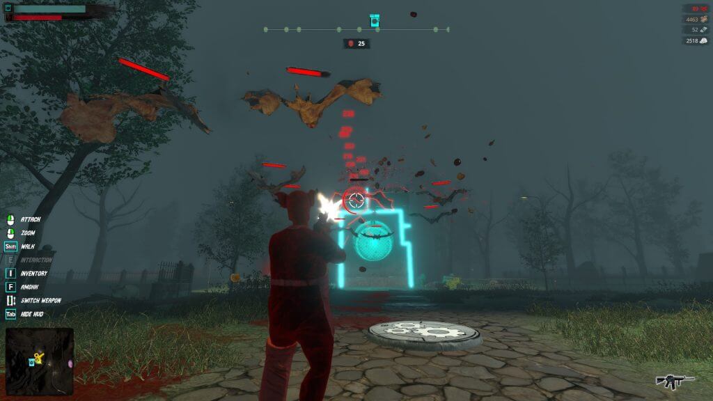 As armas possuem munição infinita, não havendo necessidade de comprar e nem mesmo de parar para recarregar, algumas armadilhas precisam ser recolocadas e atualizadas novamente cada vez que forem utilizadas, essa parte achei bem chatinha e perdi algumas vezes tentando levar a fase só na bala – talvez se elas tivessem um cooldown ao invés de você precisar rearmar, seria mais interessante.