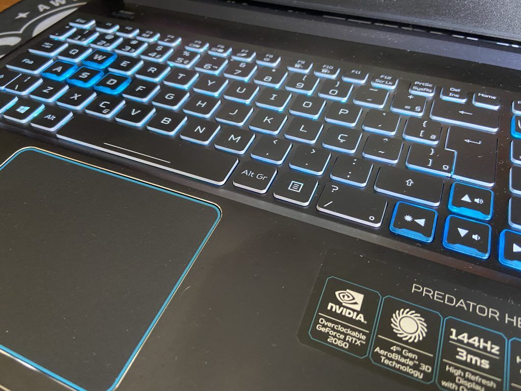 As teclas WASD, setinhas e o botão dedicado do Predator Sense possuem um design levemente diferenciado, com mais transparência para vazar a retroiluminação.