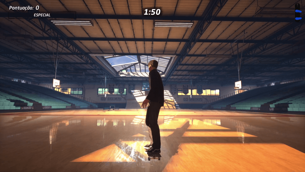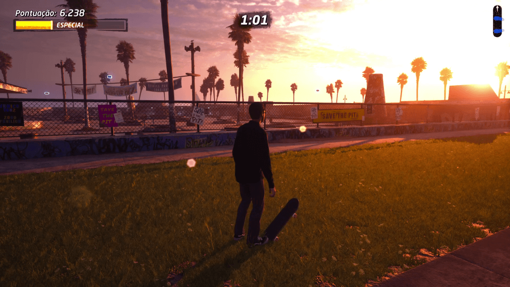 Agora, duas funções que são muito bem-vindas, pelo menos na versão de PS5 do jogo, são o Áudio 3D e o feedback háptico do controle. Começando pelo áudio, eu não preciso nem dizer quão importante a qualidade do som é para a experiência de Tony Hawk’s Pro Skater 1+2. Não somente o jogo possui uma trilha sonora incrível, como também os efeitos sonoros são importantes para o gameplay. Esses indicam perigos, obstáculos e objetivos ao longo dos mapas. Com um bom headphone, é possível identificar esses sons de forma muito clara e separada no palco sonoro, aumentando muito a experiência e o gameplay.