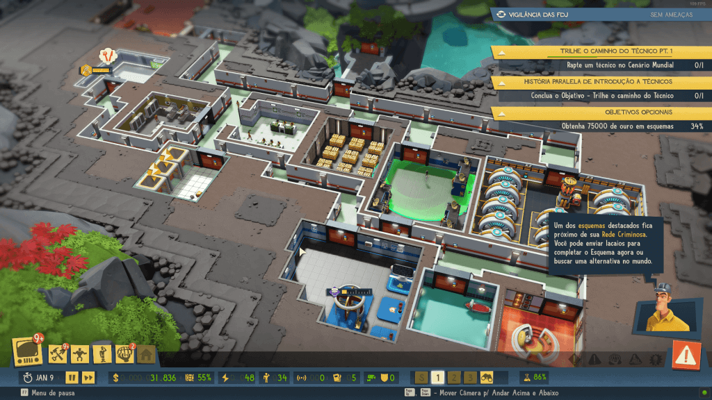 Pelo gameplay ser o grande destaque de Evil Genius 2, vou separar em duas partes. Nesse momento vou falar das opções de como montar e gerenciar sua base.